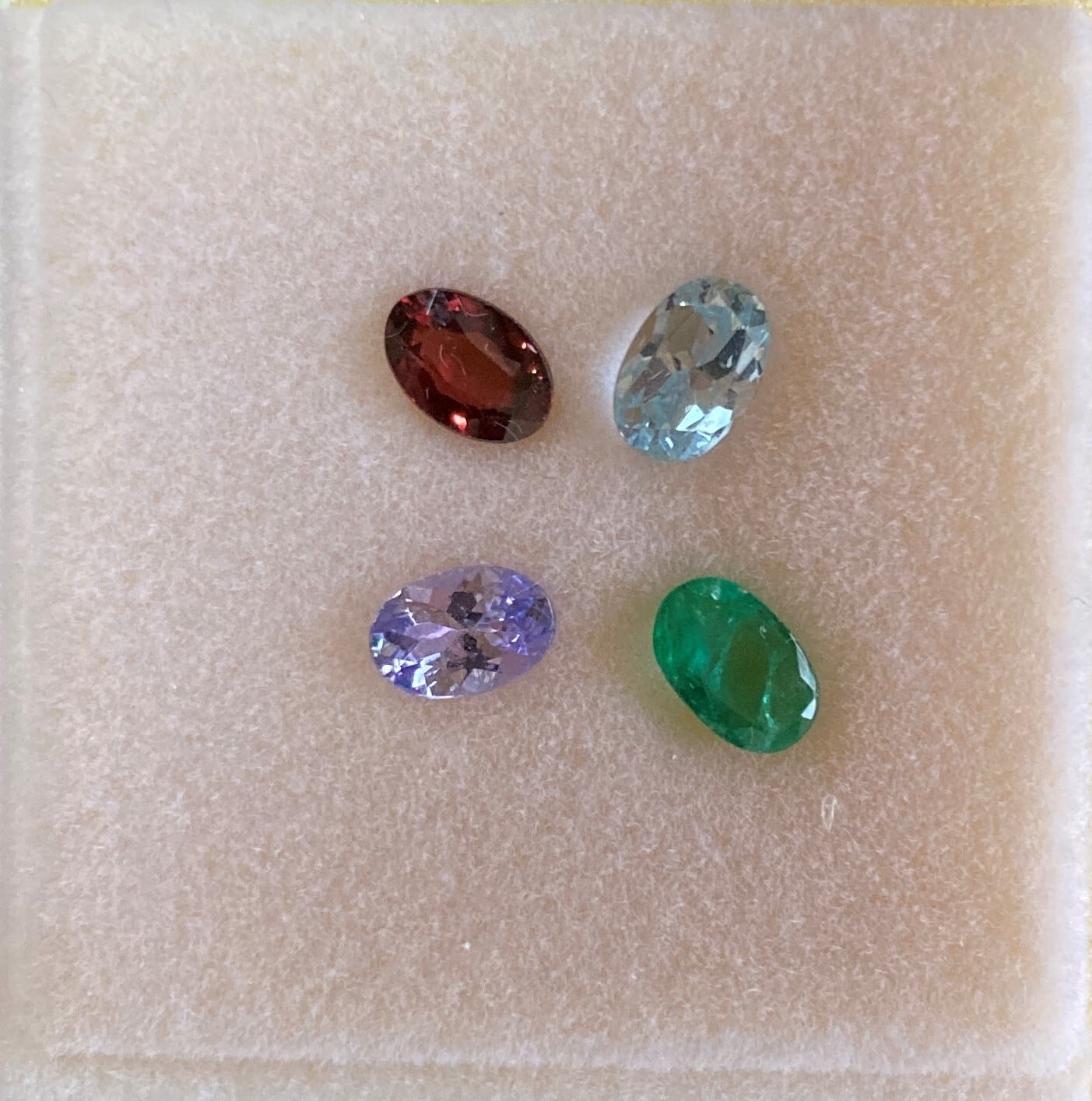 エメラルド、レッドスピネル、アクアマリン、タンザナイトをセットにしました。